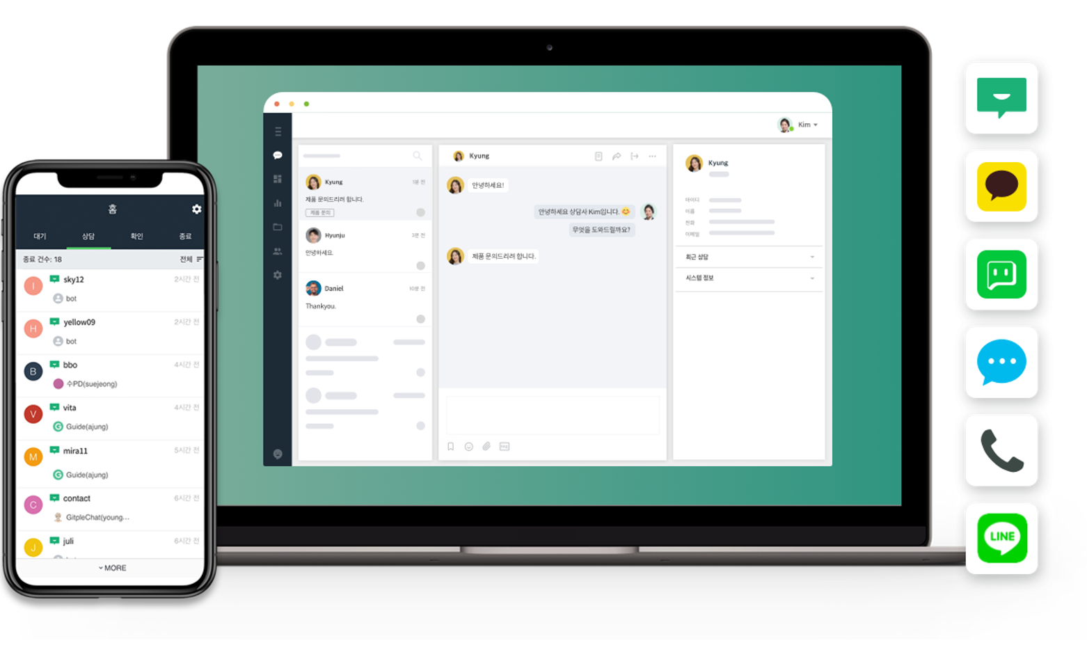 기업 규모가 클수록 더 많은 고객응대 채널을 운영할 텐데, 운영하다 보면 그 많은 채널들을 일일이 관리하는 것이 번거로울 수 있습니다. 이런 어려움을 극복할 수 있도록 옴니채널 연동기능을 제공하고 있습니다.