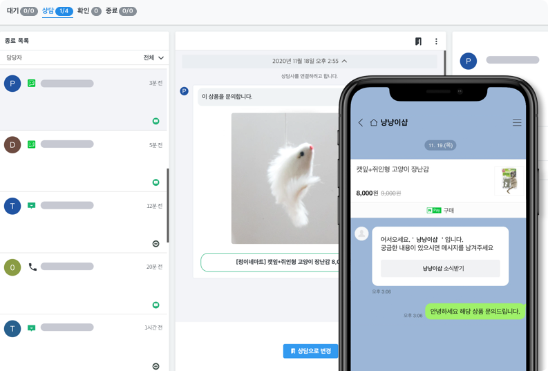 상담사는 깃플챗으로 응대할 수 있습니다.
