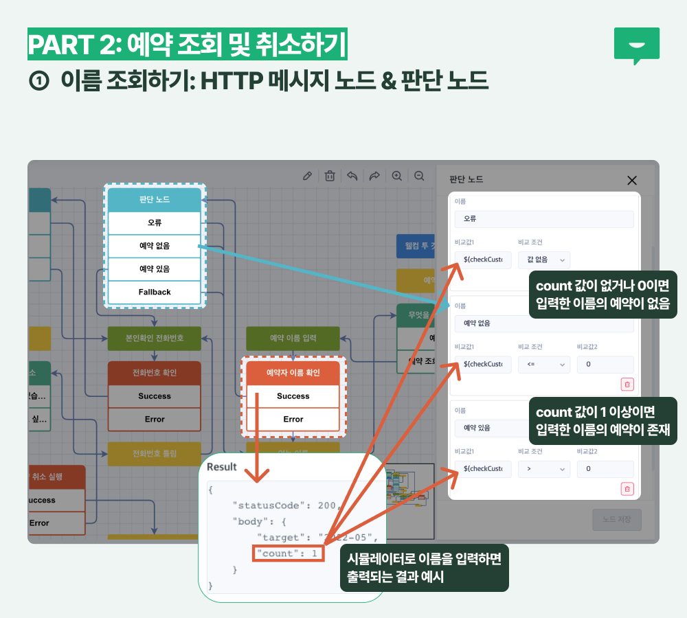 ② 전화번호 조회하기: HTTP 메시지 노드 & 판단 노드