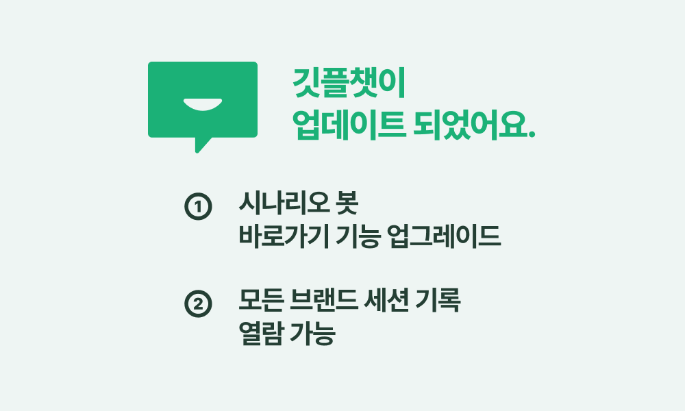 깃플챗 업데이트 사항을 알려드릴게요. 이번 업데이트는 시나리오 봇을 열심히 활용하시는 분, 그리고 카카오, 라인, 네이버톡톡 등 여러 브랜드를 복합하여 사용하시는 여러분에게 유용합니다. 이제 시나리오 봇에서 더욱 다양한 바로가기 기능을 지원합니다. 바로가기 기능은 시나리오 봇의 입력 노드 ,