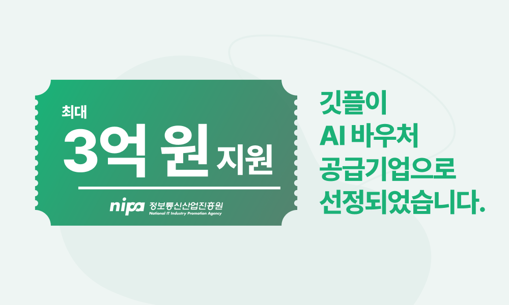 깃플이 AI 바우처 공급기업으로 선정되었습니다. AI 바우처 지원 사업으로 깃플챗을 이용하고자하는 고객이라면 저희에게 문의해 주세요! AI 바우처 지원사업은 AI 솔루션 적용이 필요한 중소 및 벤처기업에게 최대 3억원의 바우처 혜택을 주는 사업입니다. 신청기간: 2023. 01. 16(월) - 01.30(월) 15:00까지 지원대상: 국내 중소·벤처/중견기업, 의료법상