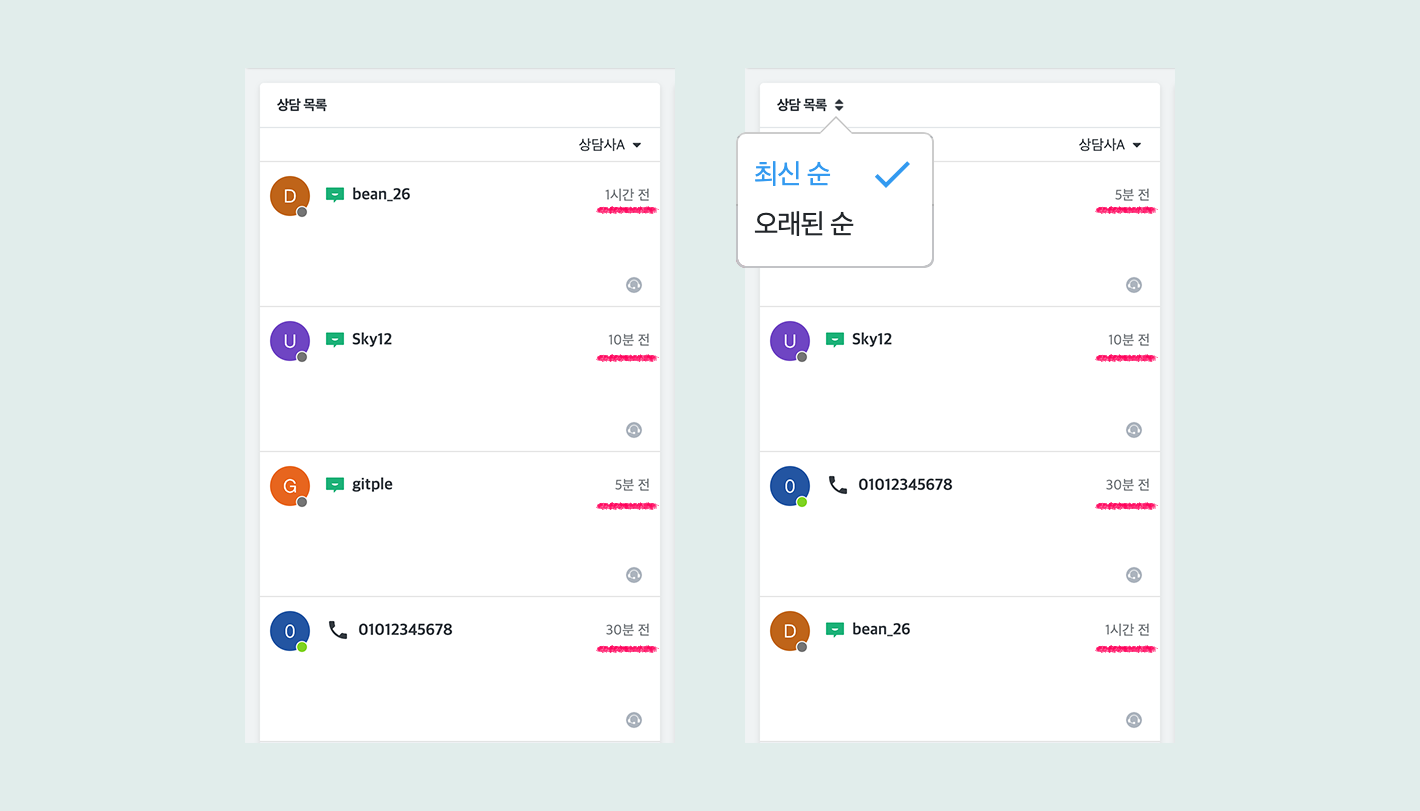 상담 정렬 기능이 추가됐습니다.